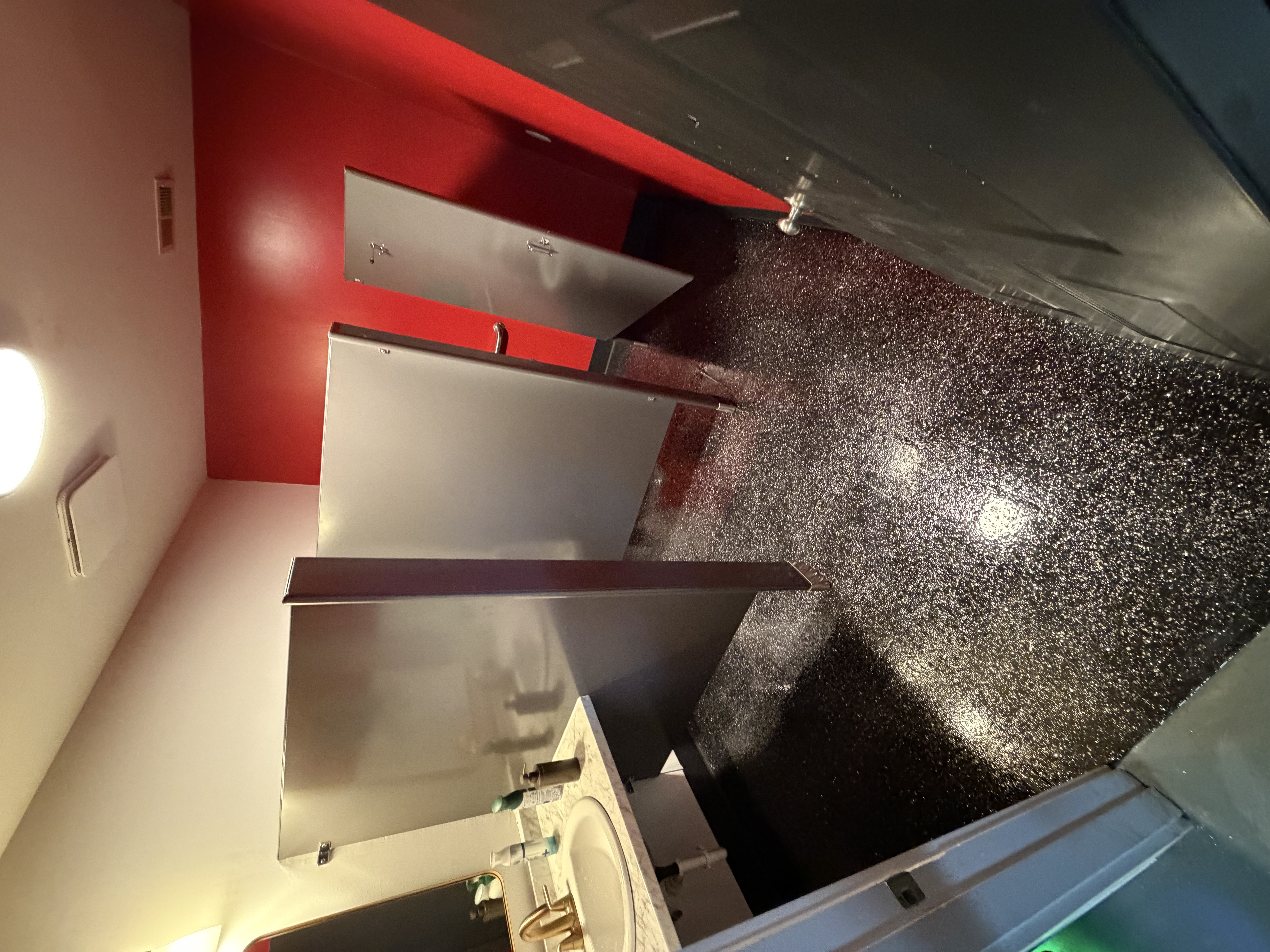 This project involved updating bar bathrooms by grinding down the existing tile and applying a durable epoxy floor coating. We also painted the walls and replaced the partition walls, giving the space a clean, modern, and more durable finish suited for high-traffic use.