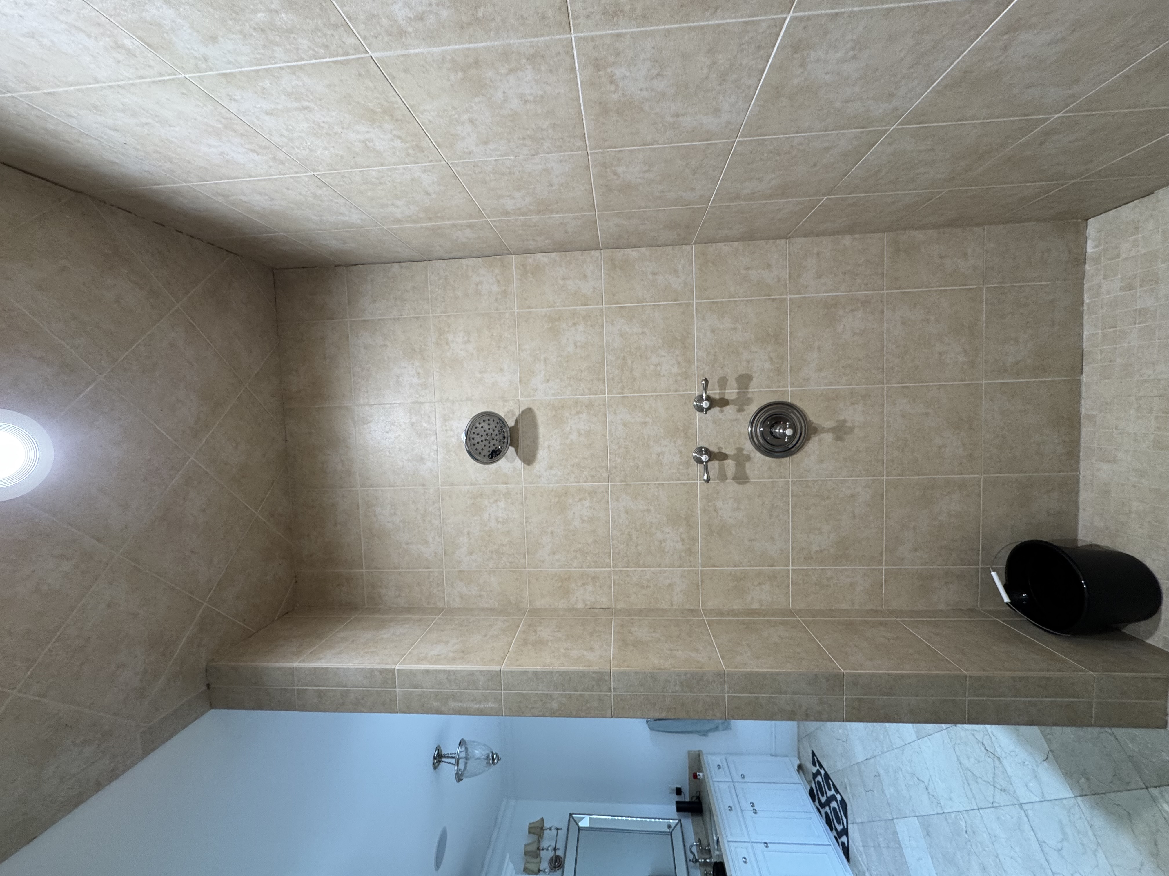 Complete shower renovation including demolition, waterproofing, and new tile installation. The finished space features modern tile work, upgraded fixtures, and a frameless glass door for a clean, updated look.